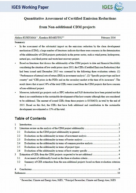 2℃目標の達成には、国家レベルの中長期ビジョンに加え、自治体、企業の気候変動分野での取り組みを連携させる仕組みの導入が鍵となります。UNFCCC/COP21で採択されたパリ協定に非国家主体による気候アクションが明記されたことを踏まえ、自治体の主体的なアクションを促すために必要なUNFCCCでの制度や、自治体にとってのメリットについて考察します。 Remarks: English Summary: http://pub.iges.or.jp/modules/envirolib/view.php?docid=6197