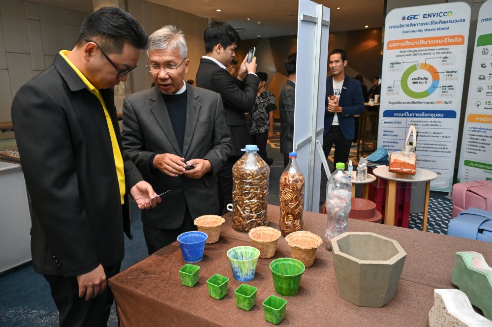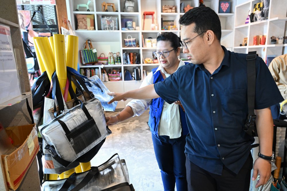On Day 3, participants visited Scrap Lab at Kasetsart University’s Faculty of Architecture. Participants learned how Scrap Lab's academic-private collaboration with factories has upcycled low-value discarded materials and led to the creation of commercially viable products, including bags and stationery made from repurposed medical waste plastic, which are now sold in European markets.
