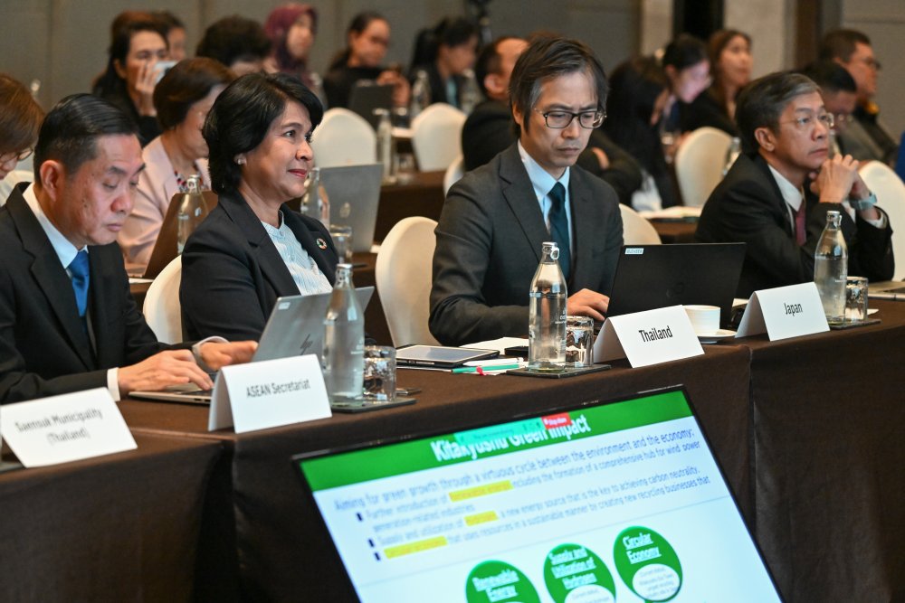 A panel session highlighted local solutions and aspirations in ‘circular economy’ and ‘climate mitigation & resilience’. Surakarta (Indonesia), Xay District (Lao PDR), and Saensuk Municipality (Thailand) presented innovative approaches to waste management, including community-based waste banks, recycling initiatives, and upcycling projects. Climate mitigation strategies focused on enhancing urban resilience, such as Kampot Province’s tree planting campaigns, Parañaque City’s Clean Air Action Plan, and Seberang Perai’s zero waste initiatives. All cities emphasised: i) their commitment to integrating public participation, in local governance; ii) the importance of public-private partnerships, community engagement, and; iii) the use of affordable technologies in addressing urban challenges. The role of international cooperation, particularly among ASEAN and with Japan, was seen as helpful for scaling up successful initiatives. Key takeaways included the need for clear local priorities, community involvement, and enforcement of environmental regulations to achieve long-term sustainability.