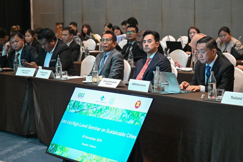 Day 1 commenced with the 14th HLS segment in the morning. Participants were welcomed with remarks by (i) Mr. Suga Yoshinori, Director for Sustainable Infrastructure, Ministry of the Environment, Japan; ii) Ms. Uma Srisuk, Director of Climate Change and Environmental Participation Promotion Division, Department of Climate Change and Environment (DCCE), Ministry of Natural Resources and Environment, Thailand; and (iii) Mr. Nguyen Minh Cuong, Chair of ASEAN Working Group on Environmentally Sustainable Cities (AWGESC). These key persons underscored the importance of regional collaboration and knowledge exchange in tackling urban sustainability challenges, including decarbonisation and climate resilience.