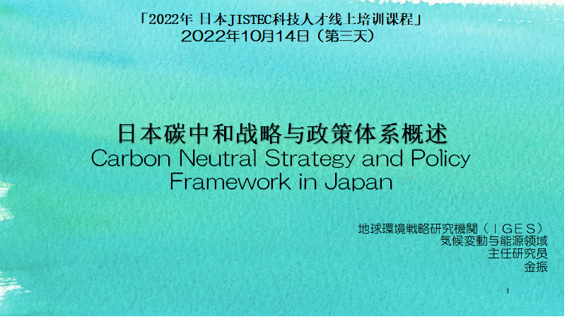 中国地方政府における科学技術政策若手公務員(140人前後)を対象に、オンライン・トレーニングを実施。日本の脱炭素戦略について体系的にレクチャー。3時間ほどのプログラム。
