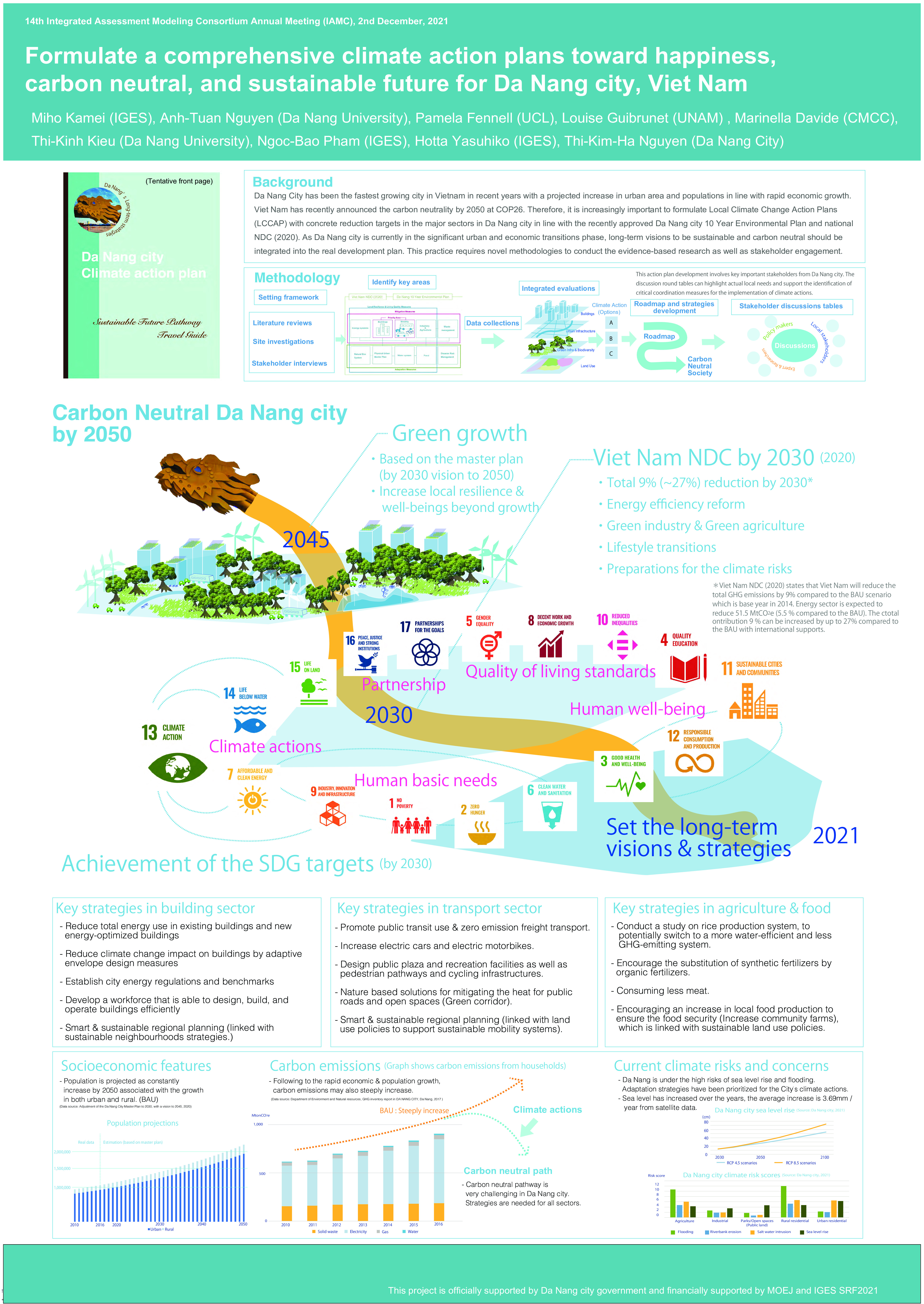 Poster presentation at the IAMC academic conference held online in December 2021. The authors presented the current development of Local Climate Change Action Plan for Da Nang city based on carbon neutral strategy by 2050.
