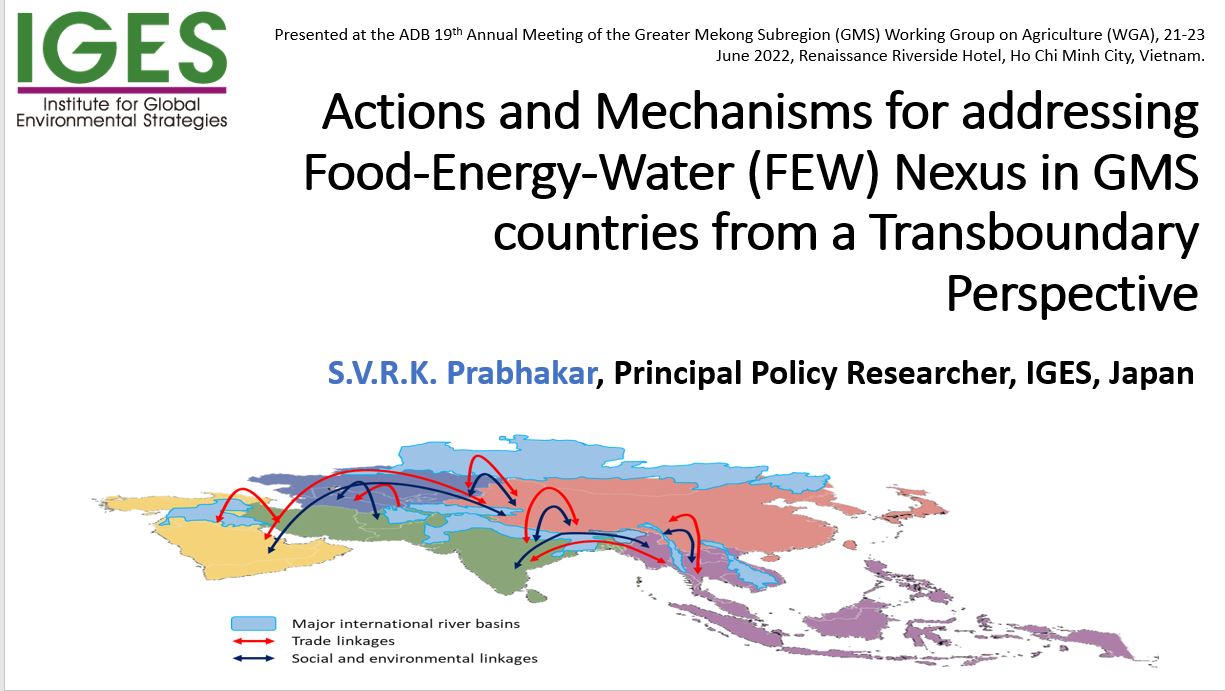 This presentation argues that the Food-Water-Energy nexus should not be seen as plot levelel or a local level or a national level issue but it has roots beyond individual countries. Hence, the issue is broadly outside the purview of most stakeholders operating at this level. It demands a robust regional and international cooperation aided by robust...