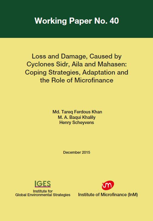 This study attempted to assess household level loss and damage resulting from three cyclones –Sidr, Aila and Mahasen – in Khulna, Patuakhali and Satkhira districts for a sample of households, the coping strategies they adopted, the determinants of these coping strategies, and the role of microfinance in coping and adapting in the aftermath of...