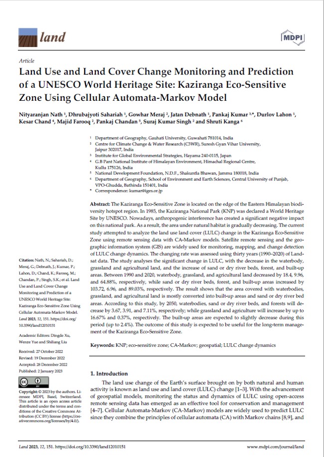 The Kaziranga Eco-Sensitive Zone is located on the edge of the Eastern Himalayan biodiversity hotspot region. In 1985, the Kaziranga National Park (KNP) was declared a World Heritage Site by UNESCO. Nowadays, anthropogenic interference has created a significant negative impact on this national park. As a result, the area under natural habitat is...
