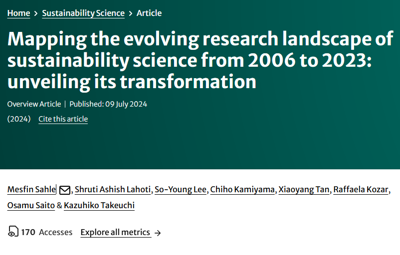 Exploring the trends of sustainability science research is vital for advancing our understanding of creating a more sustainable and resilient future for our planet and society. This overview article explores a segment of the sustainability science research landscape from 2006 to 2023 by examining articles published in the Sustainability Science...