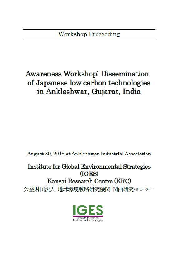 The Institute for Global Environmental Strategies (IGES), Japan, and The Energy and Resource Institute (TERI), India, organized an awareness workshop about disseminating Japanese low carbon technologies (LCTs) in India on 30th August 2018 at Ankleshwar Industries Association premises in Ankleshwar, as part of the activities under Japan-India...