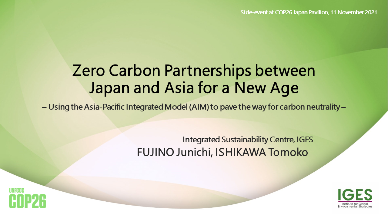 COP26 Japan pavilion side event "Zero Carbon Partnerships between Japan and Asia for a New Age – Using the Asia-Pacific Integrated Model (AIM) to pave the way for carbon neutrality–"