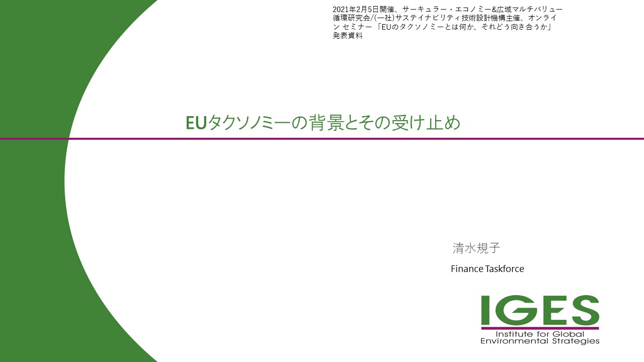 オンライン セミナー 「EUのタクソノミーとは何か、それどう向き合うか」